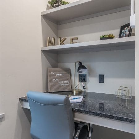 walk-in closet, private washer and dryer and private food pantry. It is everything a student needs to keep on track with their studies during the school year.
